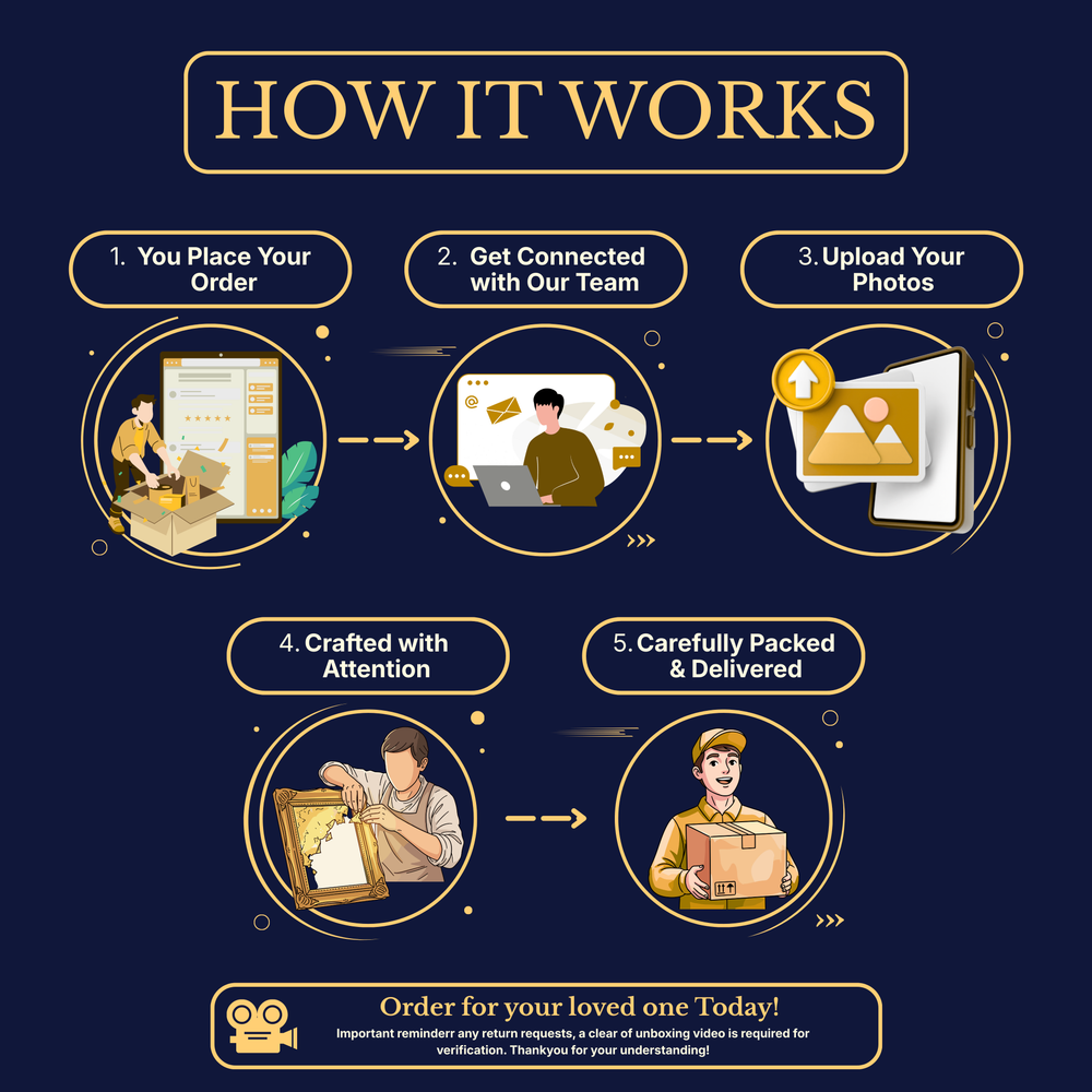 As many of our products are custom-made and personalised, we do not accept returns for reasons such as change of mind, incorrect photo selection, or personal preference after delivery.